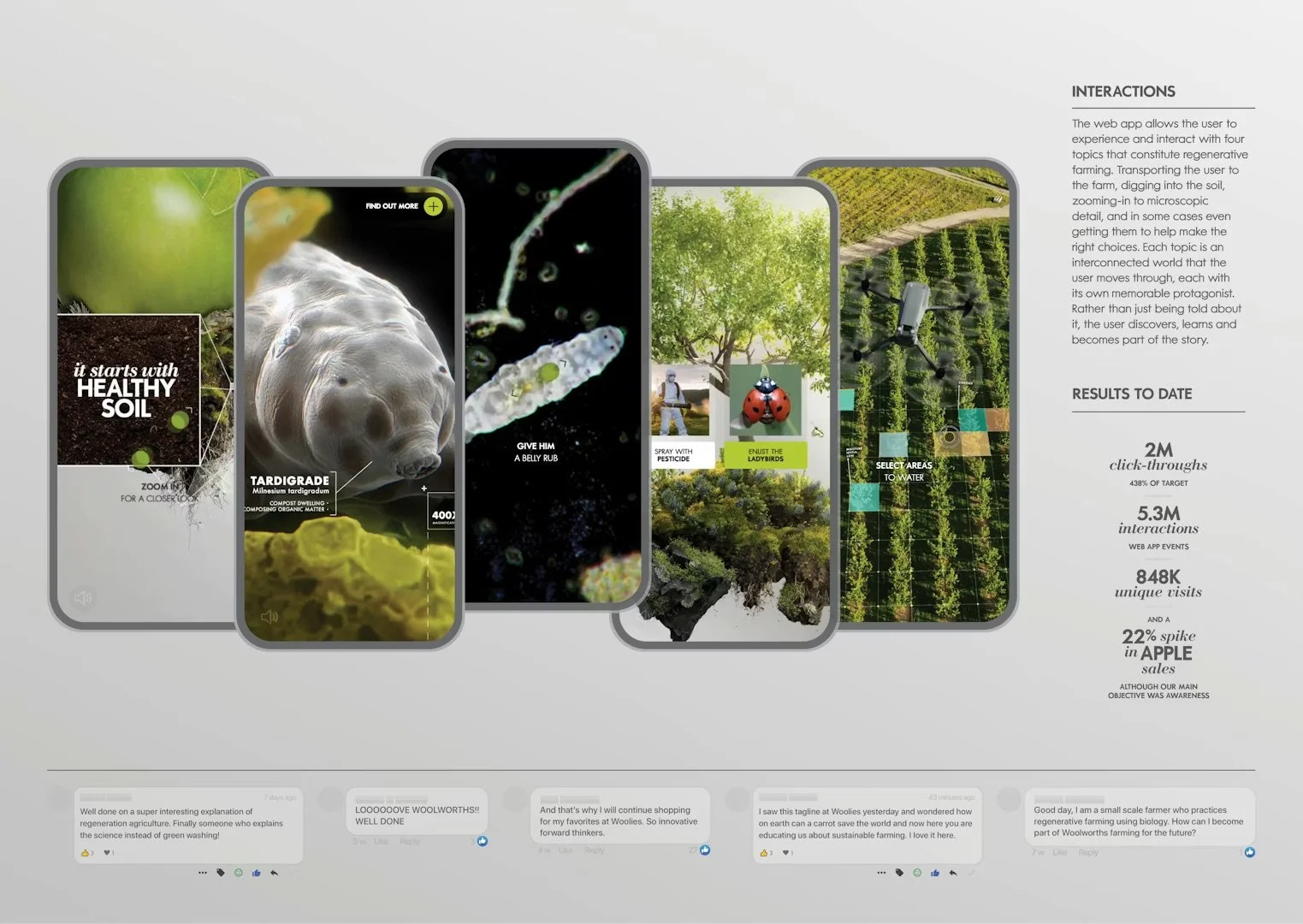 Influencers were tasked to educate their followers about the Farming for the Future campaign by taking them through the interactive digital experience. Additionally, they were tasked to create a dish/dessert with the apples they’d received - this recipe video sought to showcase the quality of Woolies apples.